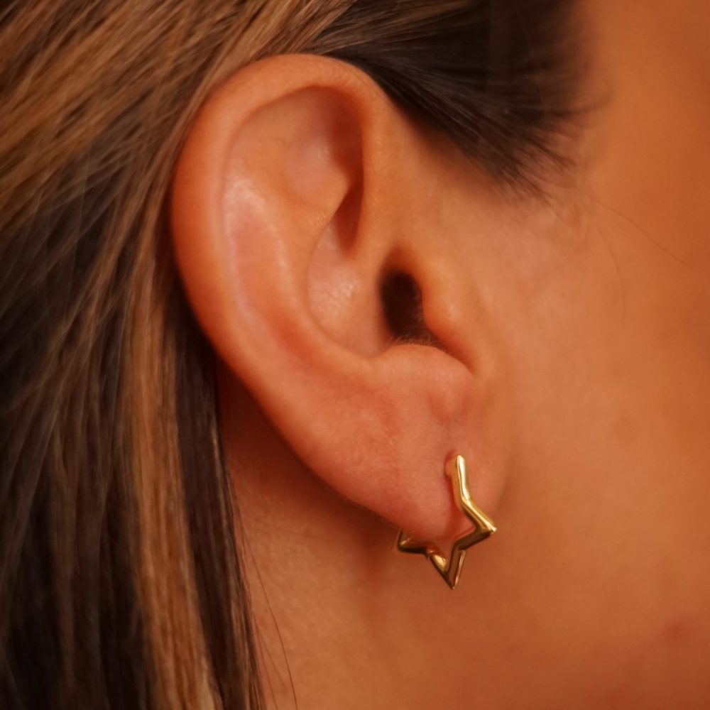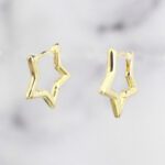 ARETES DE PLATA 925 CON BAÑO DE ORO AMARILLO, ARGOLLAS ESTRELLAS LLANAS