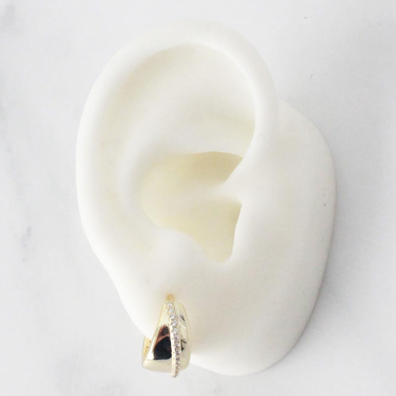 ARETES DE PLATA 925 CON BAÑO DE ORO AMARILLO, ARGOLLAS GRUESAS Y FILA CIRCONES