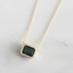 CADENA DE PLATA 925,CON BAÑO DE ORO AMARILLO CIRCÓN RECTANGULAR COLOR VERDE CON BORDE DE CIRCONES