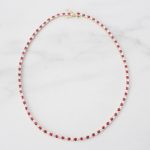 COLLAR DE PLATA 925 CON BAÑO DE RODIO TENIS ,CIRCONES INTERCALADOS BLANCOS Y ROJOS