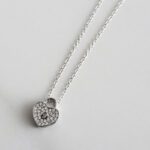 CADENA DE PLATA 925 CON BAÑO DE ORO, DIJE DE CANDADO FORMA DE CORAZÓN DE CIRCONES