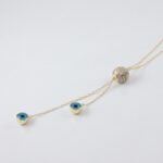 COLLAR DE PLATA 925 CON BAÑO DE ORO AMARILLO CON BOLA DE FUEGO CON CIRCONES Y DOS OJITOS AZULES