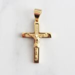 DIJE DE ACERO CRUZ CRISTO GRANDE FONDO LABRADO
