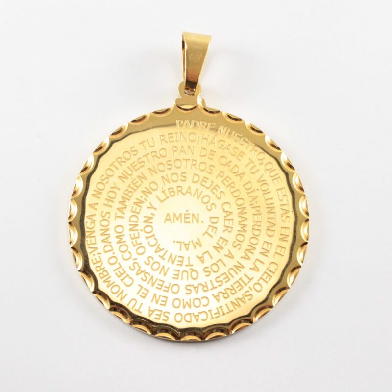 DIJE DE ACERO REDONDO GRANDE DE PADRE NUESTRO CALADO