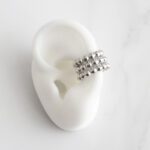 EARCUFF DE ACERO, DISEÑO DE TRES FILAS DE BOLITAS