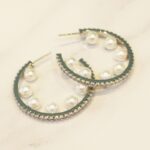 MEDIAS ARGOLLAS DE PLATA 925 CON BAÑO DE ORO AMARILLO, FILA DE CIRCONES Y PERLAS ALREDEDOR