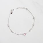 PULSERA DE PLATA 925 CON BAÑO DE ORO, CIRCÓN ROSA EN FORMA DE CORAZÓN Y CIRCONES BLANCOS