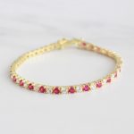 PULSERA DE PLATA 925 CON BAÑO DE ORO AMARILLO, DISEÑO TENIS DE CIRCONES COMBINADOS BLANCOS Y ROJOS