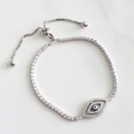 PULSERA DE PLATA 925 CON BAÑO DE ORO, AJUSTABLE TIPO TENIS DE CIRCONES CON DIJE DE OJO TURCO GRANDE