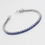 PULSERA DE PLATA 925 CON BAÑO DE ORO, DISEÑO TENIS DE CIRCONES AZULES