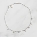 TOBILLERAS DE PLATA 925 CON BAÑO DE ORO, CON DIJE DE CIRCONES Y ESTRELLAS COLGANTES